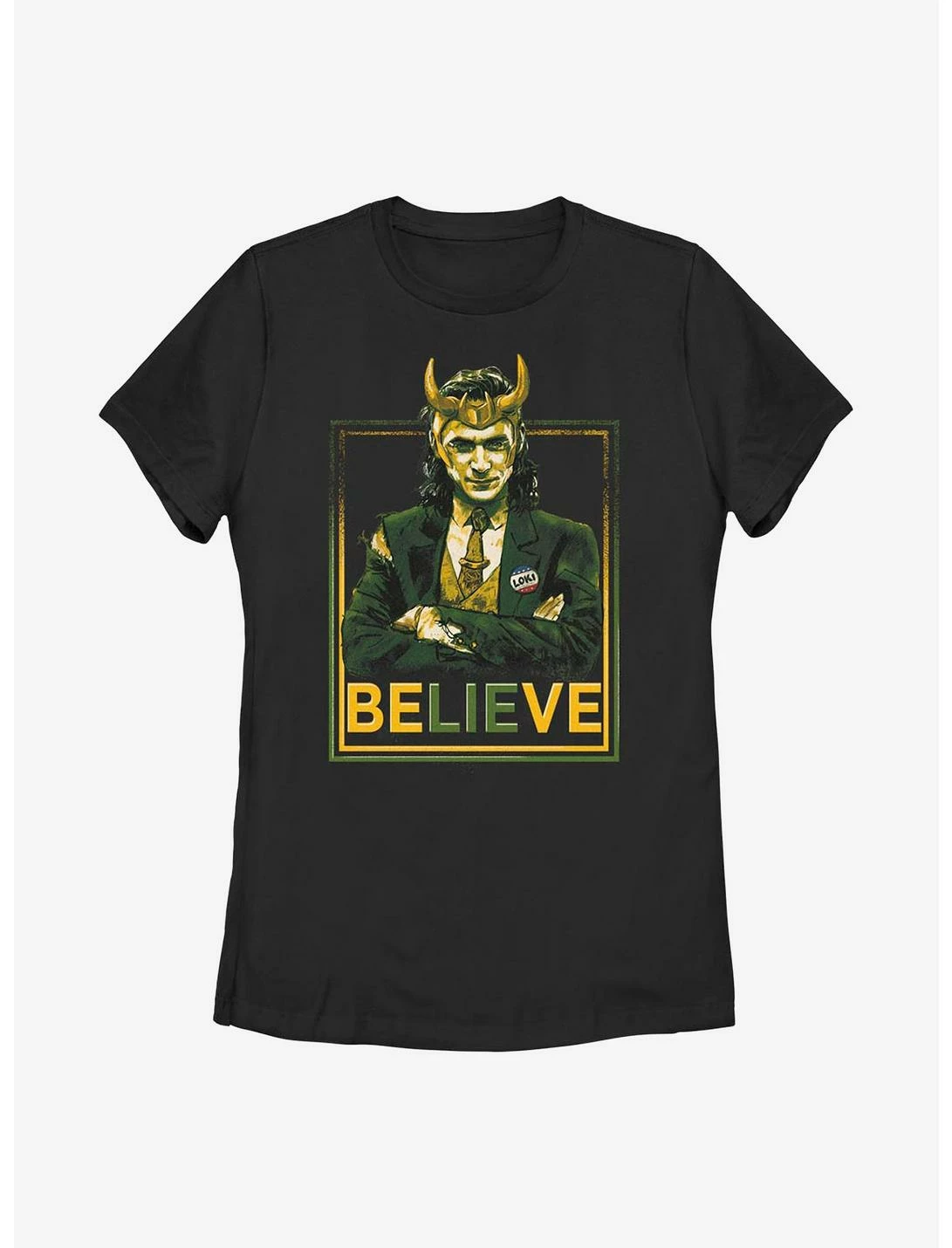 HER Marvel Loki Believe Political Motive Womens T-Shirt