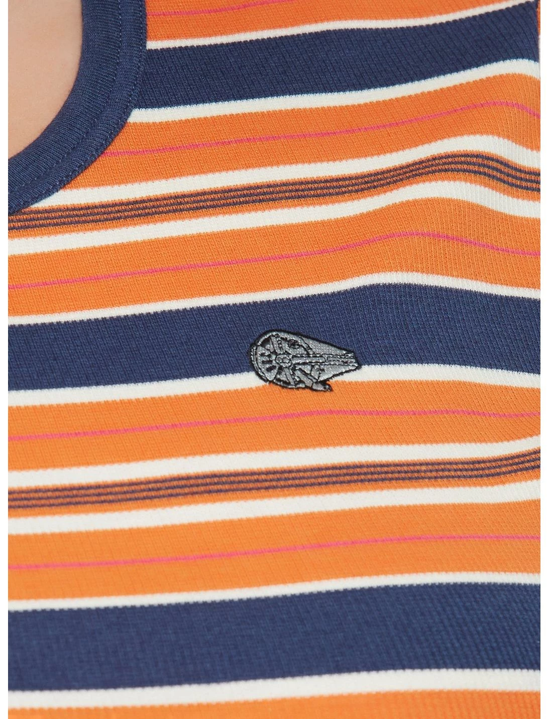 Who doesn’t love a good prequel? They’re nothing new to the Star Wars Universe, and neither is this fashion! Inspired by the 70s when the first movie was released, this ringer tee is making us think of summer days in shorts and roller skates. The orange, navy and white striped top has a small embroidered Millennium Falcon on the chest as a nod to the newest movie, Solo: A Star Wars Story.Who else can’t wait to see it?